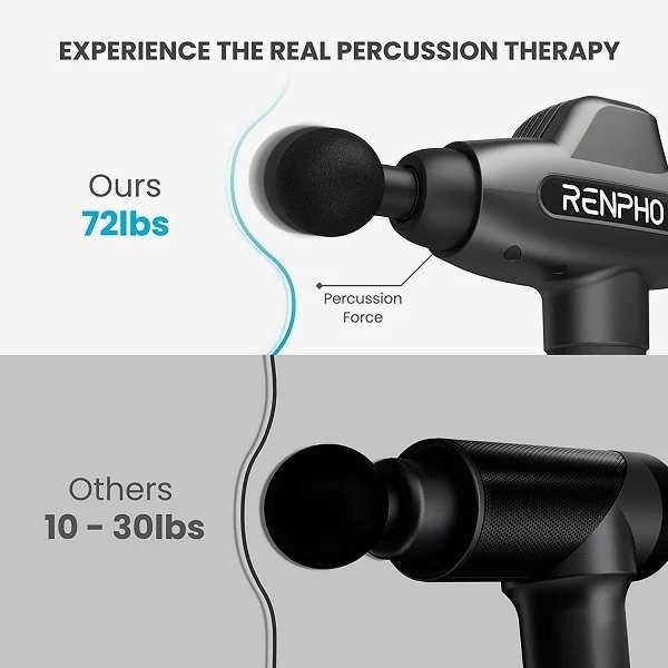 ماساژور تفنگی رنفو از یک موتور قدرتمند با گشتاور 25 نیوتن متر استفاده میکند که میتواند تا 3200 دور در دقیقه ضربات قدرتمندی را به عضلات شما وارد کند. این امر به رهاسازی اسید لاکتیک، افزایش گردش خون و تسکین درد عضلات کمک میکند.